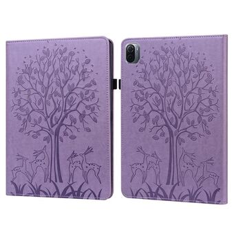 Για Xiaomi Pad 5 / 5 Pro Δερμάτινη θήκη ταμπλέτας με σχέδιο Δέντρου & Ελαφιού και ανάγλυφη εκτύπωση, με λειτουργία αυτόματης αφύπνισης / ύπνου (Μωβ)