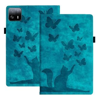 Θήκη ταμπλέτας από δέρμα με ανάγλυφο σχέδιο πεταλούδας και γάτας για Xiaomi Pad 6 Max 14 2023 (Μωβ)