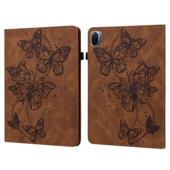 For Xiaomi Pad 5 / 5 Pro Embossed Butterfly Pattern Horizontal Flip Leather Tablet Case(Brown)