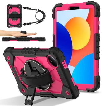 For Xiaomi Redmi Pad SE 8.7 2024 Turntable Holder Silicone Hybrid PC Tablet Case(Black+Rose Red)