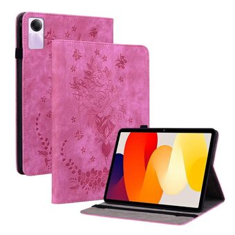 For Xiaomi Redmi Pad SE 11 inch Butterfly Rose Embossed Leather Tablet Case(Pink)