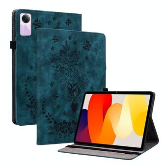 For Xiaomi Redmi Pad SE 11 inch Butterfly Rose Embossed Leather Tablet Case(Dark Blue)