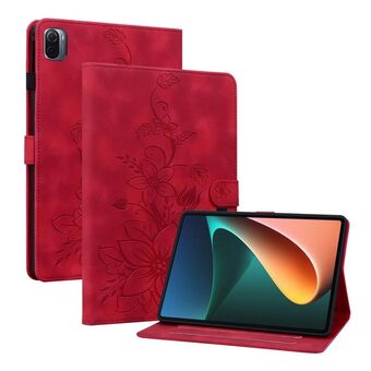 For Xiaomi Pad 5 / Pad 5 Pro Lily Embossed Leather Smart Tablet Case(Red)