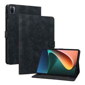For Xiaomi Pad 5 / Pad 5 Pro Lily Embossed Leather Smart Tablet Case(Black)