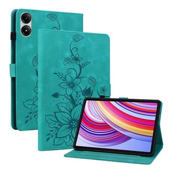 For Xiaomi Redmi Pad SE Lily Embossed Leather Tablet Case(Green)