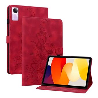 For Xiaomi Redmi Pad SE Lily Embossed Leather Tablet Case(Red)