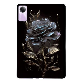 For Redmi Pad SE Color Painting Pattern Smart Tablet TPU Case(Black Rose)