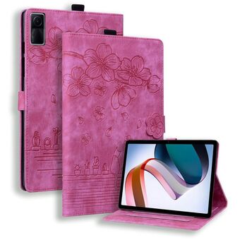 For Xiaomi Redmi Pad 10.61 2022 Cartoon Sakura Cat Embossed Leather Tablet Case(Rose Red)