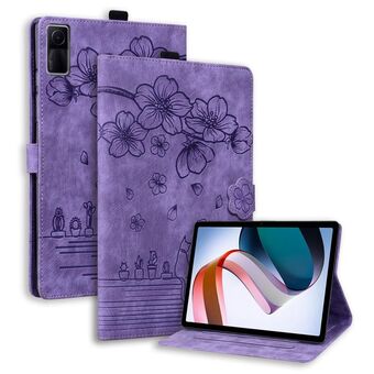 For Xiaomi Redmi Pad 10.61 2022 Cartoon Sakura Cat Embossed Leather Tablet Case(Purple)