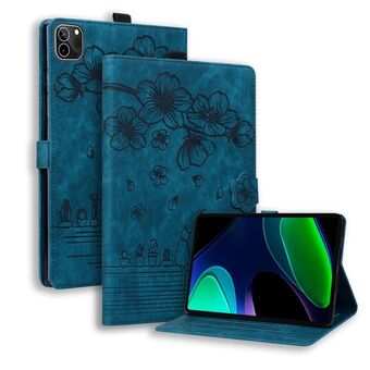 For Xiaomi Pad 6 / 6 Pro Cartoon Sakura Cat Embossed Leather Tablet Case(Blue)