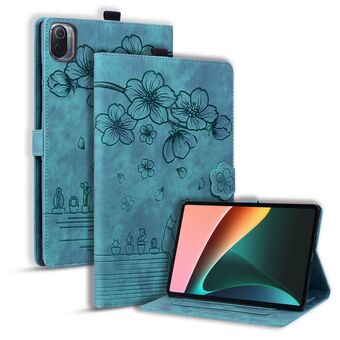 For Xiaomi Pad 5 / 5 Pro Cartoon Sakura Cat Embossed Leather Tablet Case(Blue)