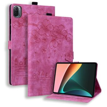 For Xiaomi Pad 5 / 5 Pro Cartoon Sakura Cat Embossed Leather Tablet Case(Rose Red)