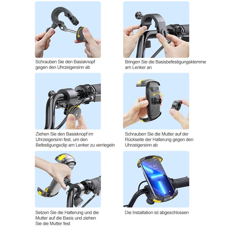 5. Easy Installation: One hand operation motorcycle phonemount is easy to install without tool. Suit well with various types of bicycles, motorcycles,stroller, shopping cart, electric scooter, indoor treadmill, indoor bike.