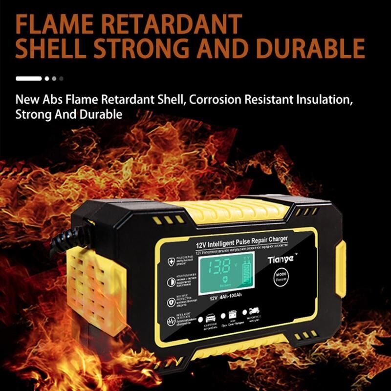 Motorcycle / Car Battery Smart Charger with LCD Creen, Plug Type:EU Plug(Yellow)
