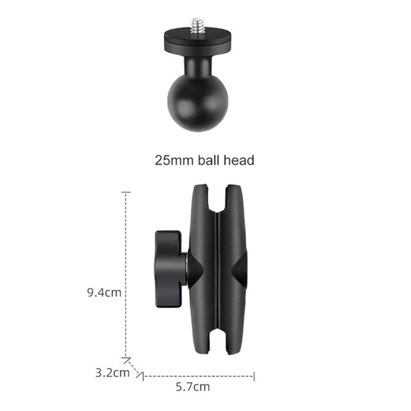 4. Η βάση έχει μια οπή βίδας 1/4, η οποία μπορεί να συνδεθεί με ένα τριγωνικό κλιπ ή μια προέκταση ράβδου, και η κορυφή είναι μια βίδα 1/4, η οποία μπορεί να συνδεθεί με μια κάμερα, κλιπ κινητού τηλεφώνου ή προσαρμογέα, κ.λπ.·