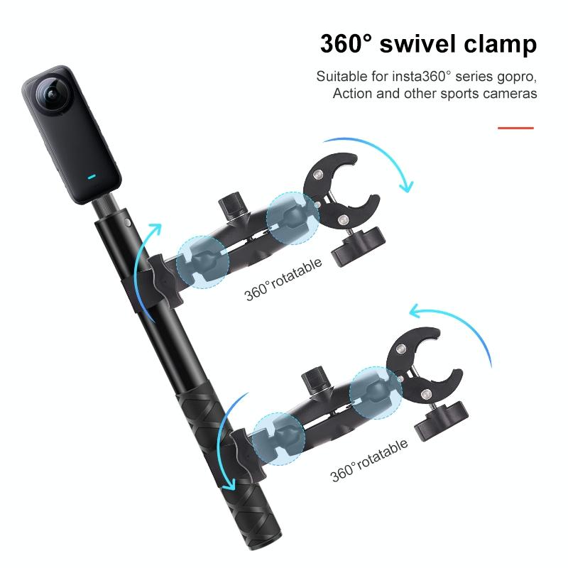 5. Widely used to install panoramic cameras, sports cameras, mobile phones, convenient for the first perspective shooting, can be used for live broadcast, selfie, etc.; Can also be used to link the installation of vehicle navigation