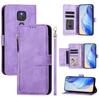 For Motorola Moto G Play 2021 Multi-Card Slots Zipper Wallet Leather Phone Case(Purple)