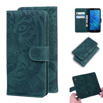For Motorola Moto E6 Tiger Embossing Pattern Horizontal Flip Leather Case with Holder & Card Slots & Wallet(Green)
