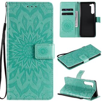 For Motorola Edge Pressed Printing Sunflower Pattern Horizontal Flip PU Leather Case with Holder & Card Slots & Wallet & Lanyard(Green)