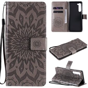 For Motorola Edge Pressed Printing Sunflower Pattern Horizontal Flip PU Leather Case with Holder & Card Slots & Wallet & Lanyard(Grey)