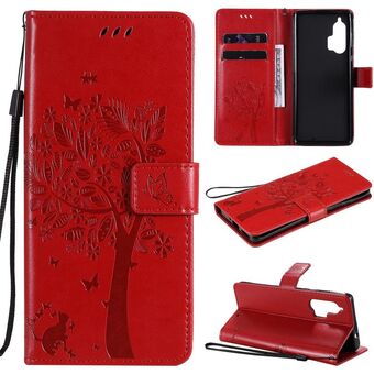 For Motorola Edge+ Tree & Cat Pattern Pressed Printing Horizontal Flip PU Leather Case with Holder & Card Slots & Wallet & Lanyard(Red)