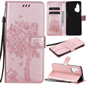 For Motorola Edge+ Tree & Cat Pattern Pressed Printing Horizontal Flip PU Leather Case with Holder & Card Slots & Wallet & Lanyard(Rose Gold)