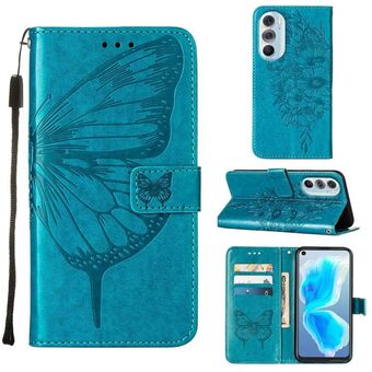 For Motorola Moto G Power 2022 Embossed Butterfly Leather Phone Case(Blue)
