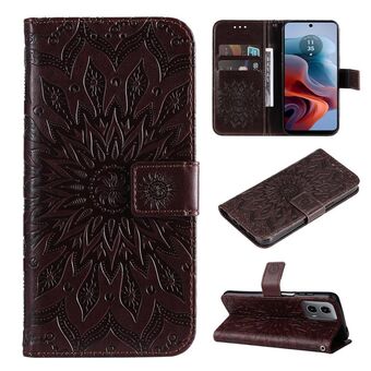 For Motorola Moto G34 Embossed Sunflower Pattern Flip Leather Phone Case(Brown)