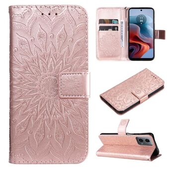 For Motorola Moto G34 Embossed Sunflower Pattern Flip Leather Phone Case(Rose Gold)
