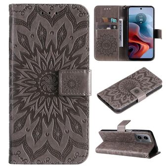 For Motorola Moto G34 Embossed Sunflower Pattern Flip Leather Phone Case(Grey)