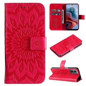 For Motorola Moto G34 Embossed Sunflower Pattern Flip Leather Phone Case(Red)