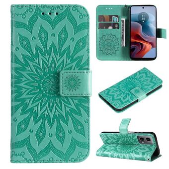 For Motorola Moto G34 Embossed Sunflower Pattern Flip Leather Phone Case(Green)