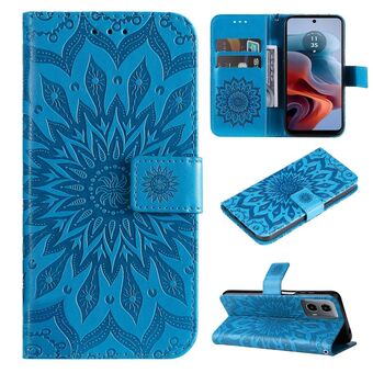 For Motorola Moto G34 Embossed Sunflower Pattern Flip Leather Phone Case(Blue)