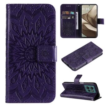 For Motorola Edge 50 5G Embossed Sunflower Pattern Flip Leather Phone Case(Purple)