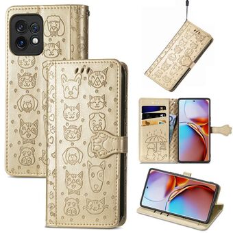 For Motorola Moto X40 Cute Cat and Dog Embossed Flip Leather Phone Case(Gold)