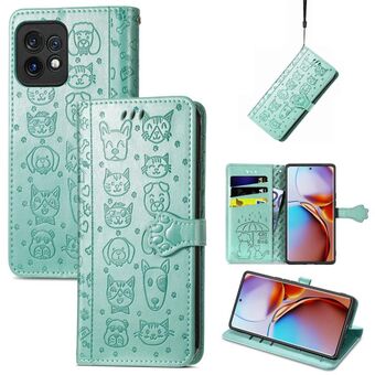 For Motorola Moto X40 Cute Cat and Dog Embossed Flip Leather Phone Case(Green)