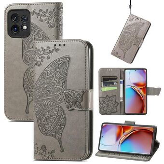 For Motorola Moto X40 Butterfly Love Flower Embossed Leather Phone Case(Gray)