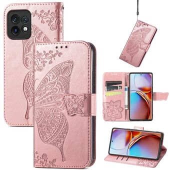 For Motorola Moto X40 Butterfly Love Flower Embossed Leather Phone Case(Pink)