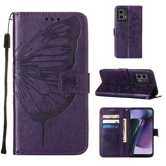 For Motorola Moto G Stylus 5G 2023 Embossed Butterfly Leather Phone Case(Dark Purple)