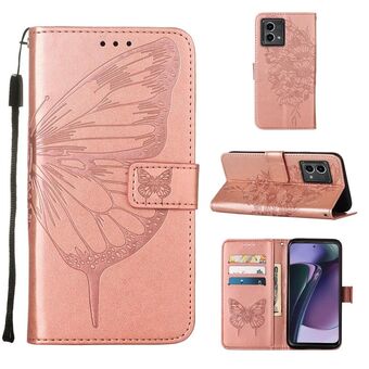 For Motorola Moto G Stylus 5G 2023 Embossed Butterfly Leather Phone Case(Rose Gold)