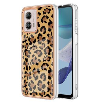 For Motorola Moto G Play 2023 Electroplating Marble Dual-side IMD Phone Case(Leopard Print)