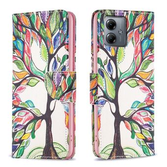 For Motorola Moto G14 4G Colored Drawing Pattern Leather Phone Case(Tree Life)