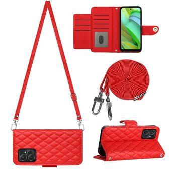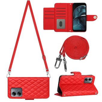 For Motorola Moto G Power 2023 Rhombic Texture Flip Leather Phone Case with Long Lanyard(Red)