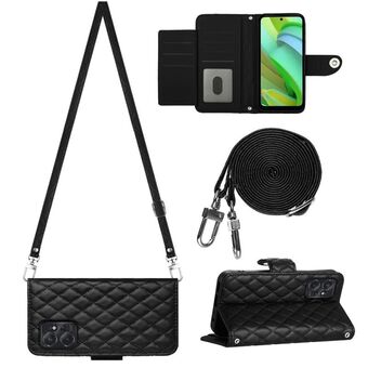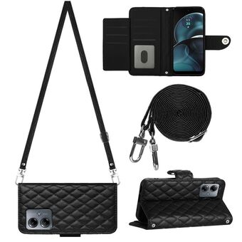 For Motorola Moto G Power 2023 Rhombic Texture Flip Leather Phone Case with Long Lanyard(Black)