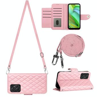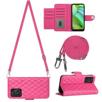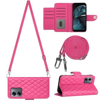 For Motorola Moto G Power 2023 Rhombic Texture Flip Leather Phone Case with Long Lanyard(Pink)