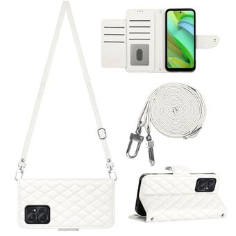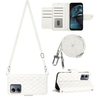 For Motorola Moto G Power 2023 Rhombic Texture Flip Leather Phone Case with Long Lanyard(White)