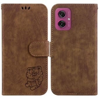 For Motorola Moto G55 Little Tiger Embossed Leather Phone Case(Brown)