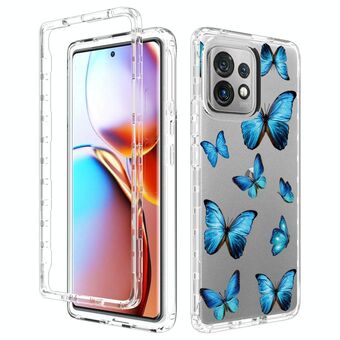 For Motorola Edge+ 2023 Transparent Painted Phone Case(Blue Butterflies)