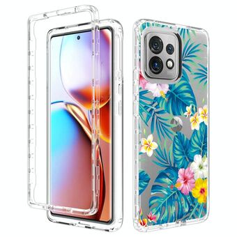 For Motorola Edge+ 2023 Transparent Painted Phone Case(Pink Flower)