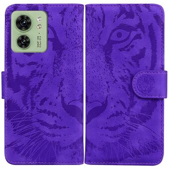 For Motorola Edge 40 Tiger Embossing Pattern Leather Phone Case(Purple)